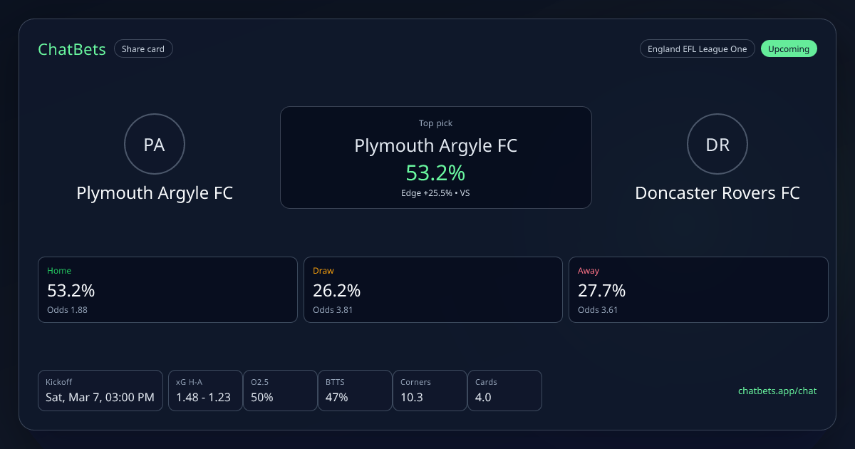 Plymouth Argyle FC vs Doncaster Rovers FC prediction card