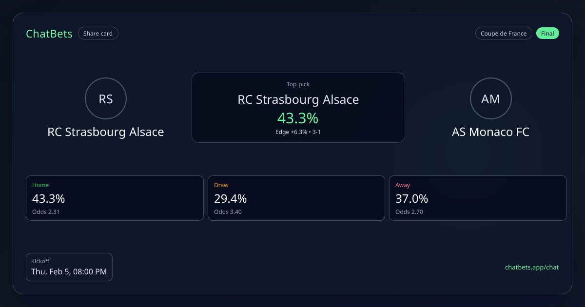 RC Strasbourg Alsace vs AS Monaco FC Prediction Card | ChatBets