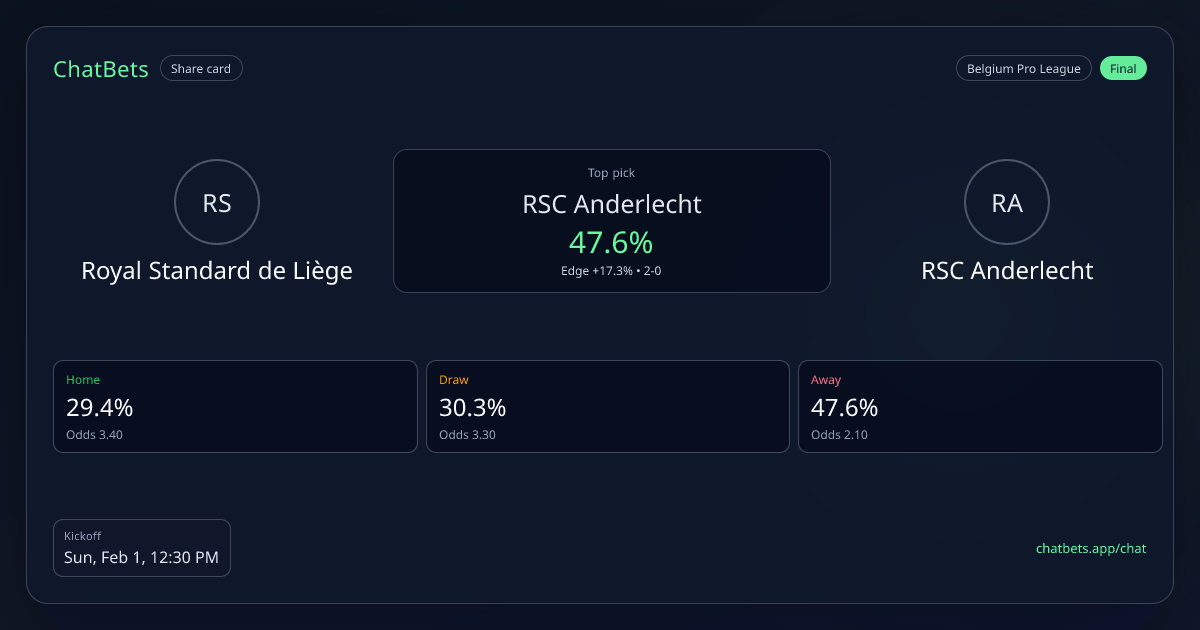 Royal Standard de Liège vs RSC Anderlecht prediction card