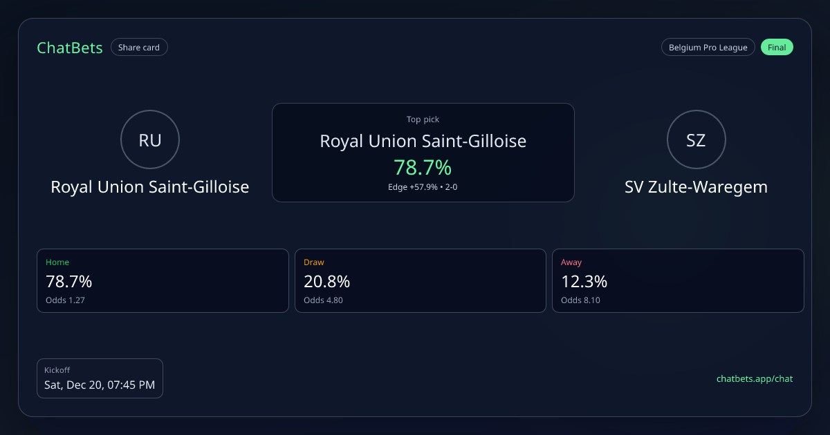 Royal Union Saint-Gilloise vs SV Zulte-Waregem prediction card