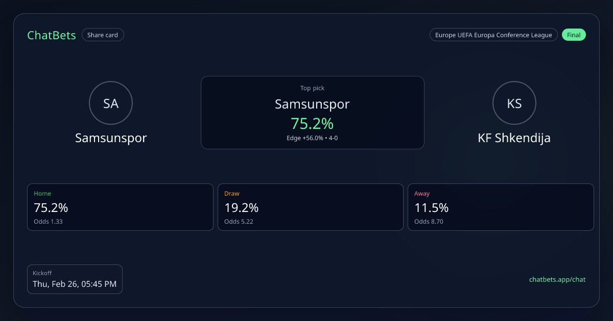 Samsunspor vs KF Shkendija prediction card