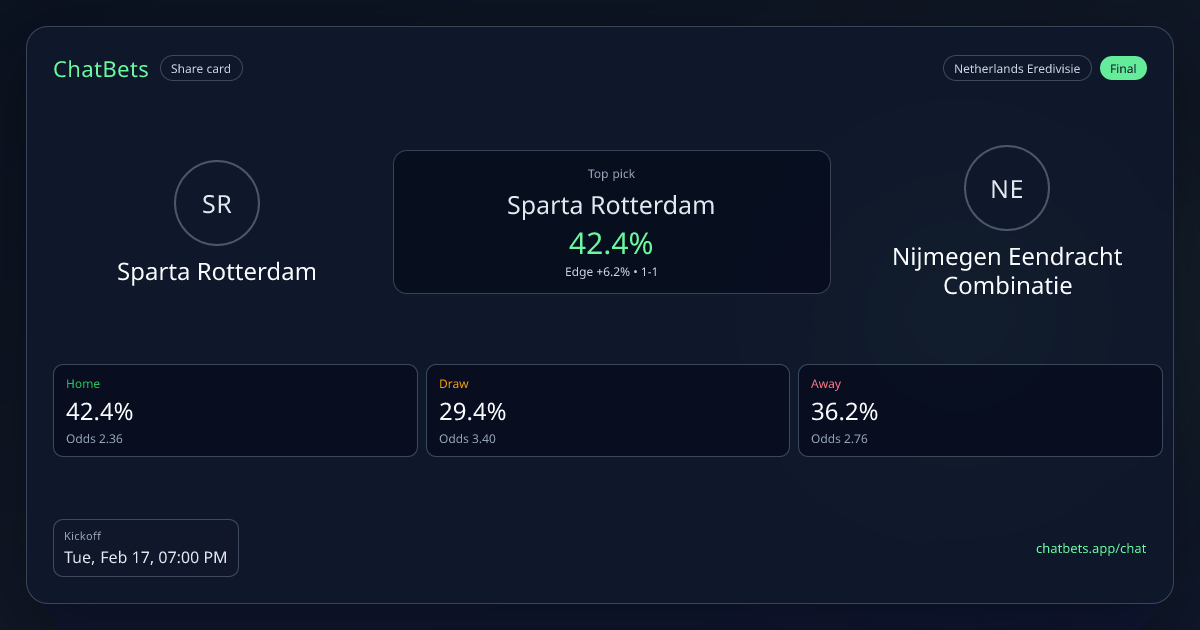 Sparta Rotterdam vs Nijmegen Eendracht Combinatie prediction card