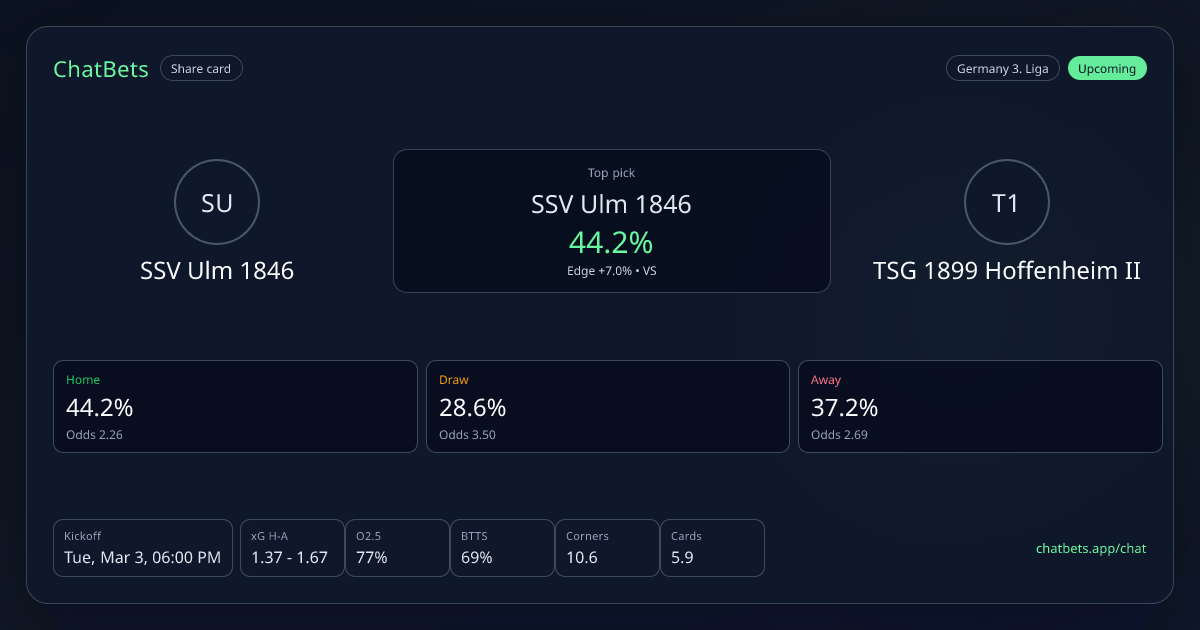 SSV Ulm 1846 vs TSG 1899 Hoffenheim II prediction card