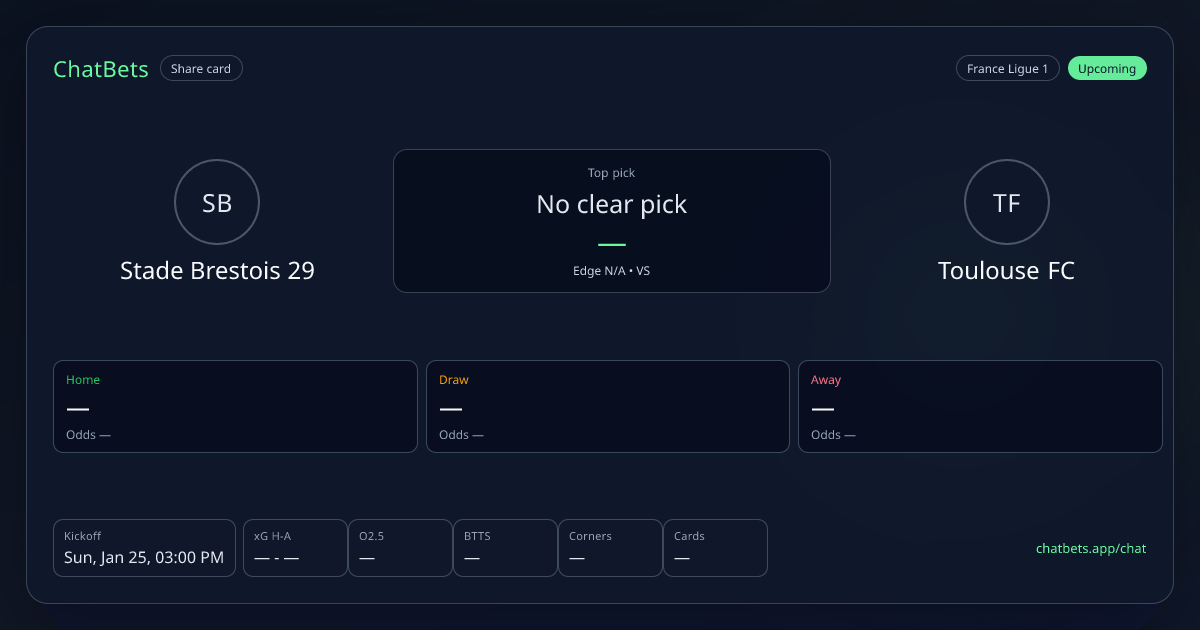 Stade Brestois 29 vs Toulouse FC prediction card