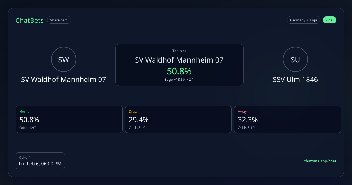 SV Waldhof Mannheim 07 vs SSV Ulm 1846 prediction card