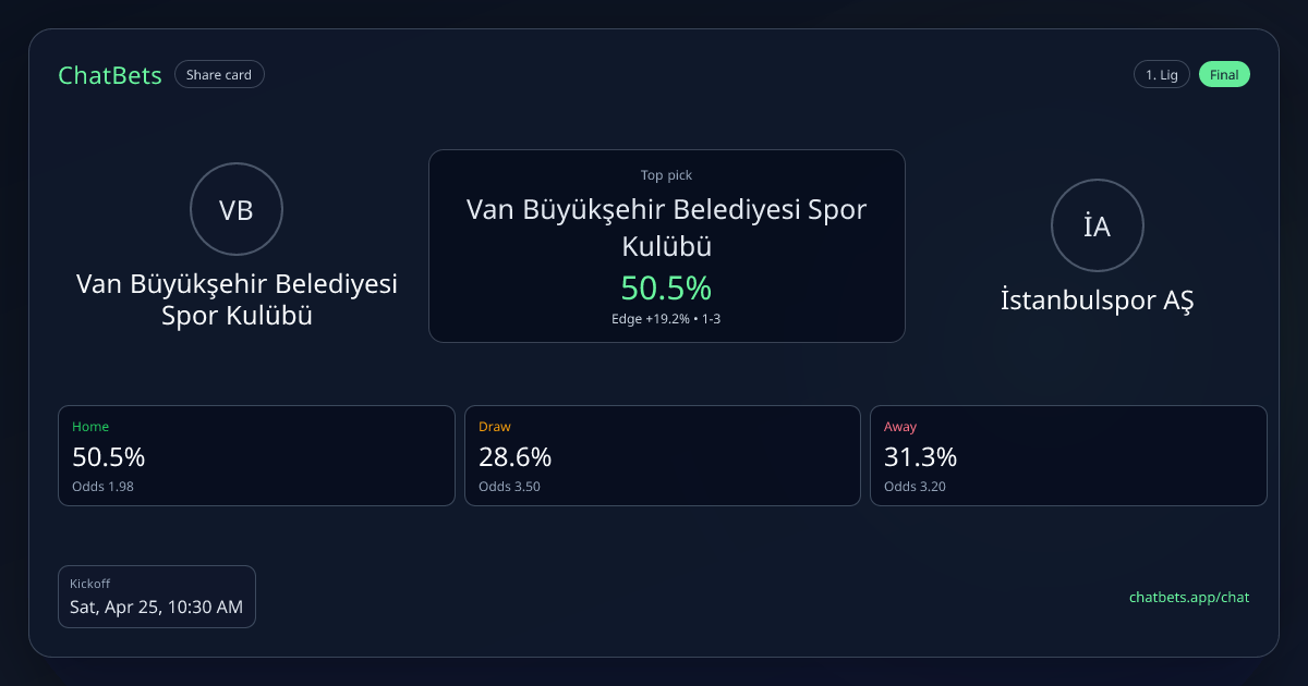 Van Büyükşehir Belediyesi Spor Kulübü vs İstanbulspor AŞ prediction card