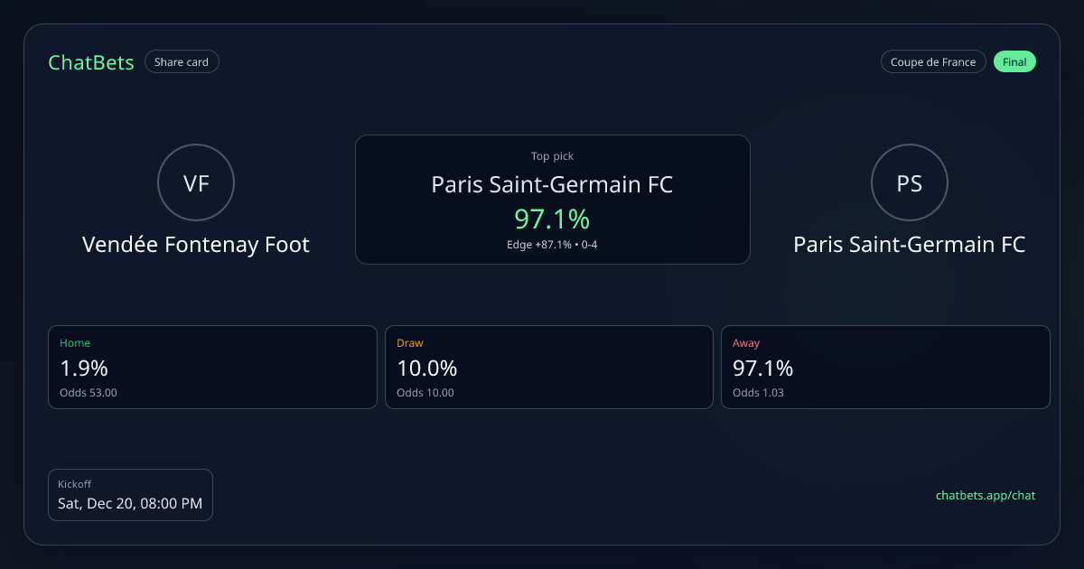 Vendée Fontenay Foot vs Paris Saint-Germain FC prediction card